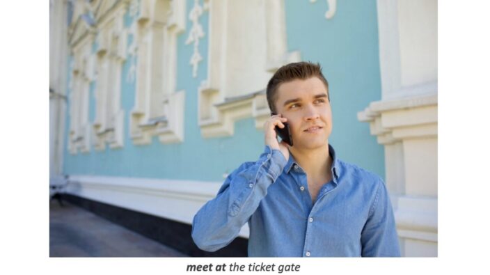 改札の基本フレーズ1つ目は「改札で会う」です。meet atを用いて表現します。