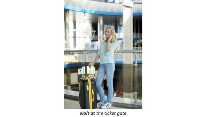 改札の基本フレーズ4つ目は「改札で待つ」です。waitを用いて表現します。