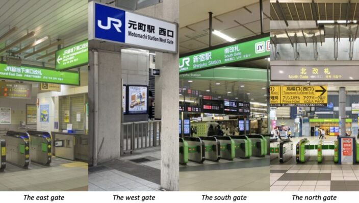 ポイント1.東口・西口・南口・北口は「方角+gate」で表現