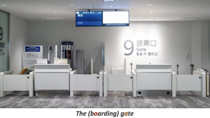 ポイント3.飛行機の搭乗口は「the(boarding)gate」
