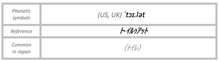 「トイレ」は英語にはない言葉です。最後まで「toilet」と言い切りましょう。